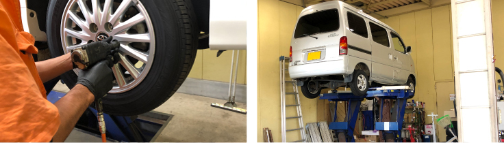 国家資格を持つ整備士が丁寧に点検・整備を行います。真心こめた「愛情整備」・「情熱整備」で1人でも多くのお客様に、幸せなカーライフをお届けすることを目指します。